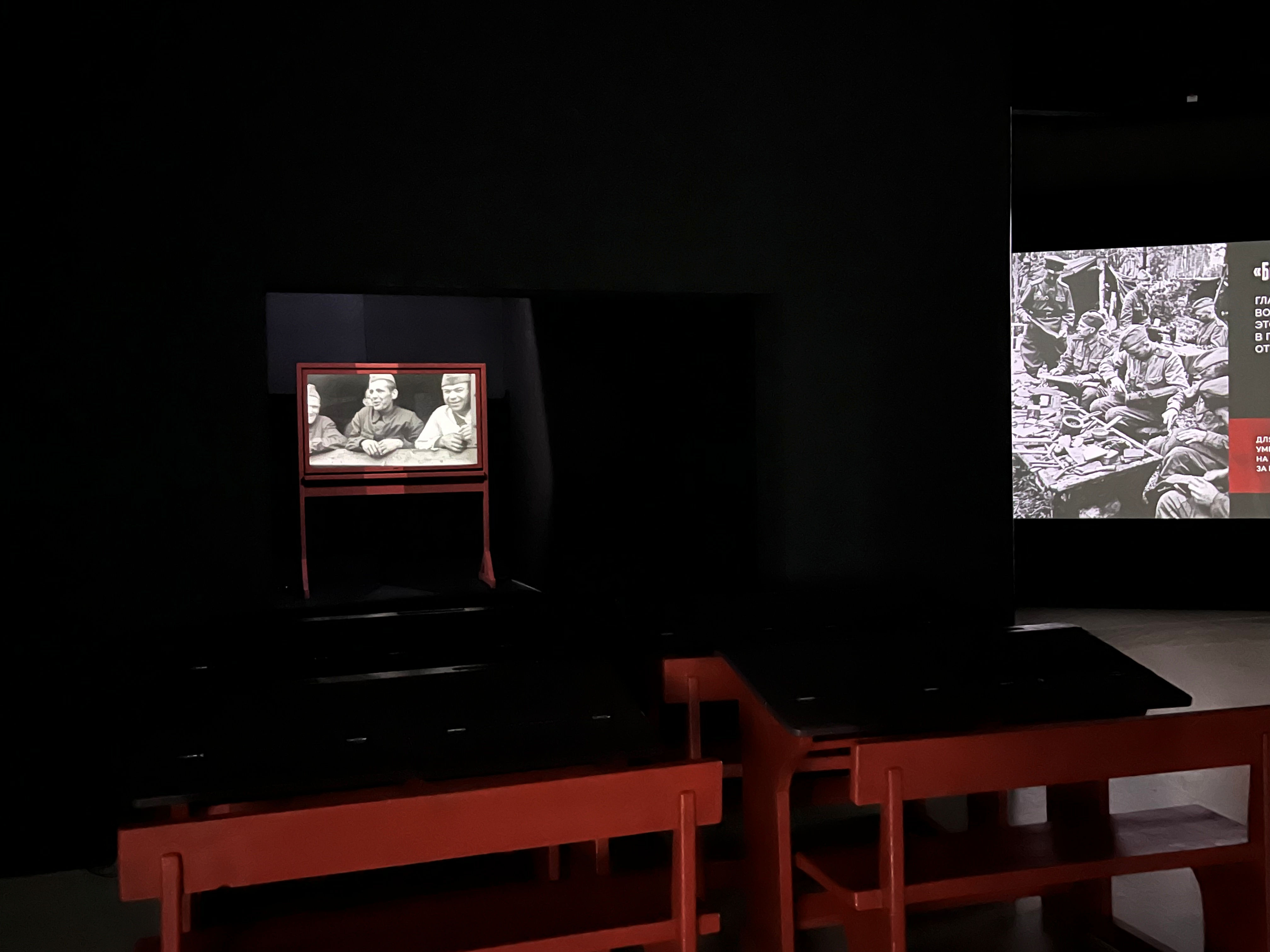 ● полноразмерные декорации: партизанская землянка, палата эвакогоспиталя, школьный класс - вовлекают посетителя в военное время;